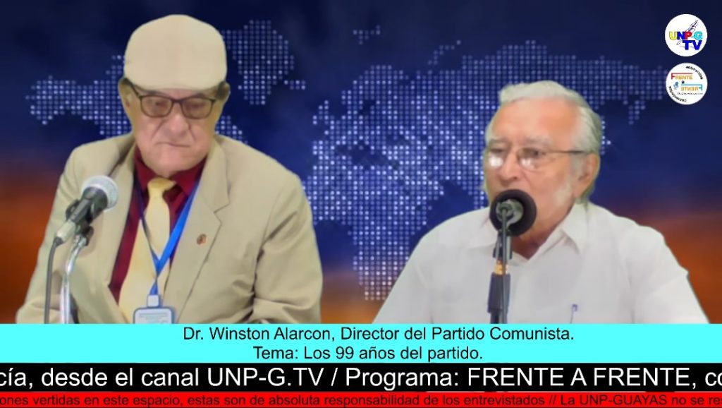 Frente a Frente: Dr. Winston Alarcón Ver video en Facebook – Dr. Winston Alarcón, Director del Partido Comunista. – Tema: Los 99 años del partido. Programa: Frente a Frente 22/05/2025 / Unp Guayas / UNP-G.tv / Carlos Garcia / Richard Sellan últimos programas Frente a Frente: La marcha organizada por el Presidente Noboa. Frente a Frente: Día Internacional del Afrodescendiente.