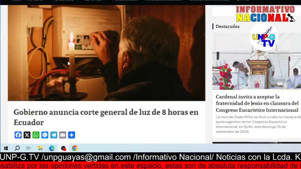 * Gobierno anuncia corte general de luz de 8 horas en Ecuador